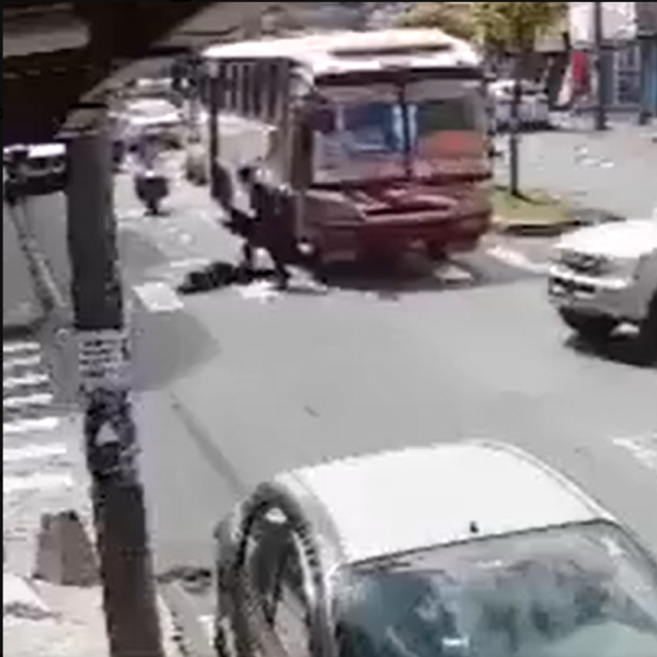 El momento fue grabado en disntintos videos y difundido en redes sociales, donde se observa al hombre caer a la calle y permanecer en shock, recostado en una acera. Mientras, vecinos lo auxilian y retienen al cobrador de bus con golpes hasta la llegada de las autoridades.