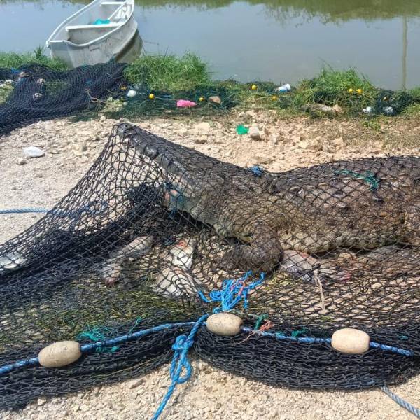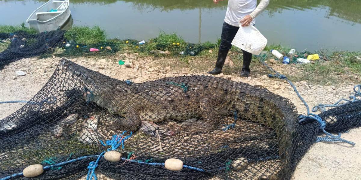 La alerta se reportó pasado el medio día del martes 4 de noviembre de 2025 en Durán. Un cocodrilo fue capturado por comuneros en una camaronera de ese cantón del Guayas.