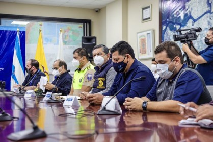 El COE cantonal durante una de sus reuniones. Foto: @alcaldiagye