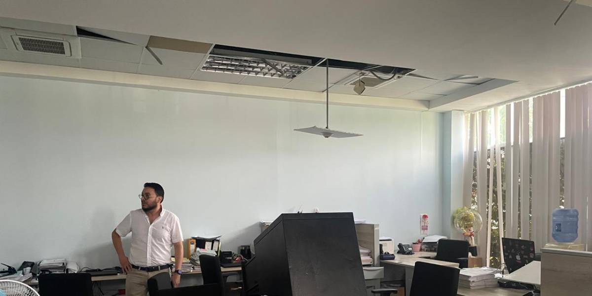 Parte del techo de una unidad judicial en Esmeraldas resultó afectada tras el sismo.( )