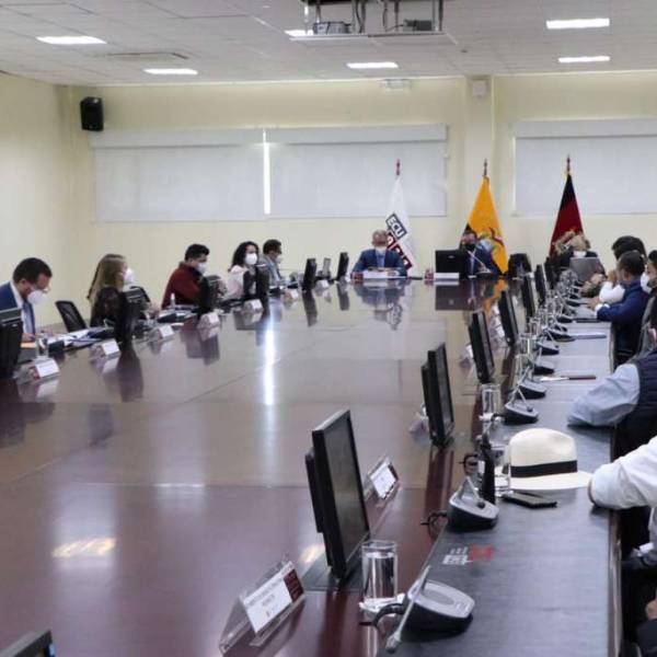 Autoridades del COE Nacional y delegados de las organizaciones políticas mantuvieron una reunión en el ECU911 para analizar acciones que eviten aglomeraciones durante la campaña electoral.
