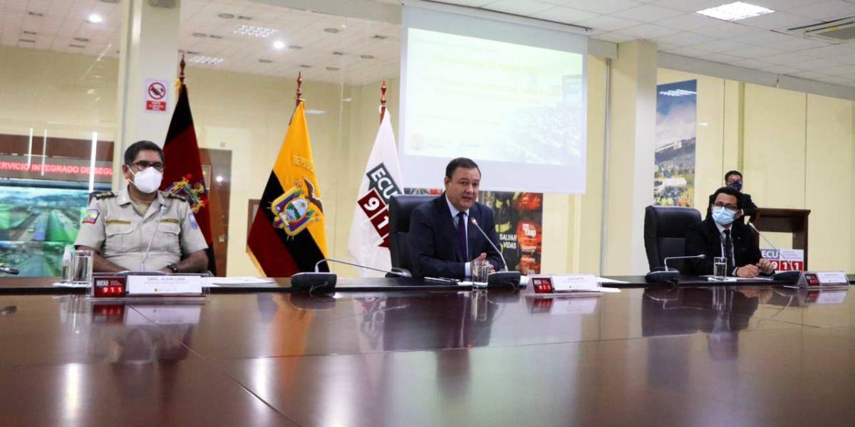 Juan Zapata (centro), presidente del COE Nacional, dijo que no se pedirá un nuevo estado de excepción.( )