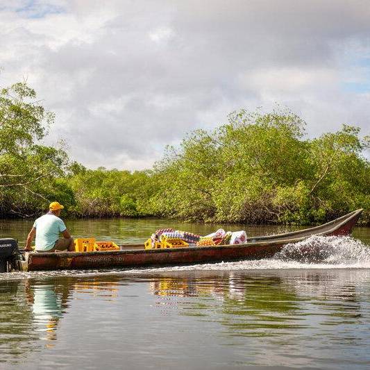 Mientras cargan su lancha con 100 bultos, otra embarcación con 100 paquetes más llega desde la isla Santo Domingo Chico, norte del golfo, hasta el muelle de la Caraguay. Este es el centro de acopio donde la Federación Nacional de Cooperativas Pesqueras Artesanales ha recibido unos 12 mil sacos, de mayo a julio de este año.