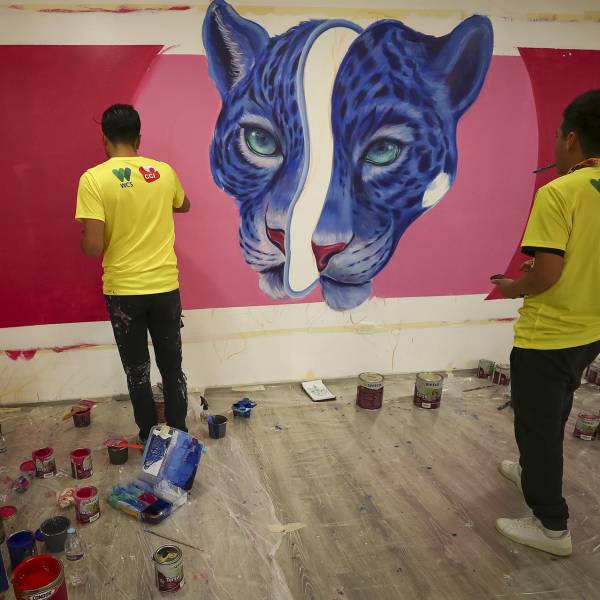 Artistas dibujan un jaguar en un centro comercial de Quito.( )