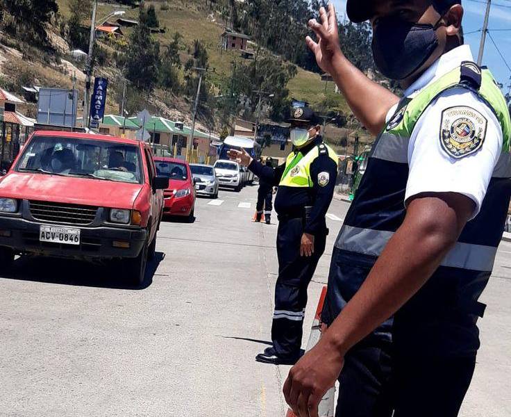 Imagen de controles de transito en Ecuador donde un carro se encuentra en contol con un policia.( )