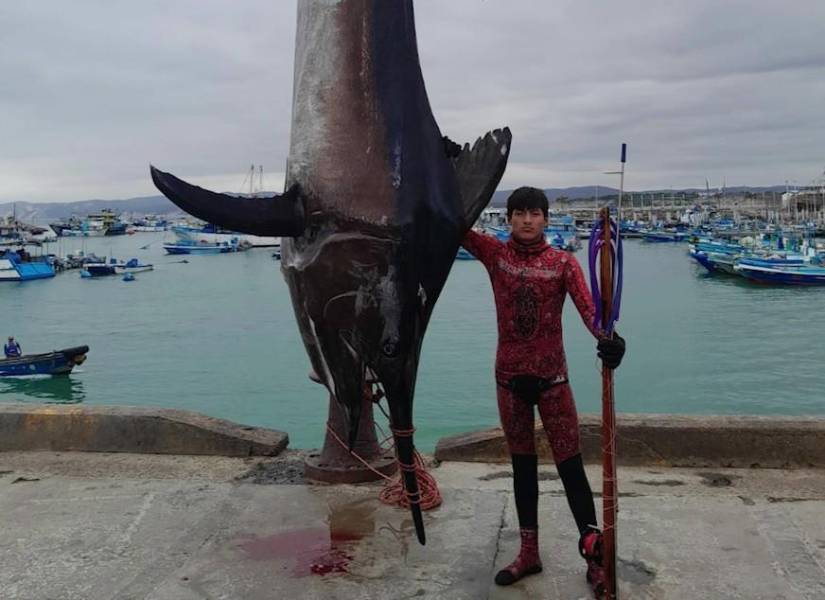 Con un arpón y sin oxígeno, un joven manabita pescó un marlín de 655 libras en Jaramijó