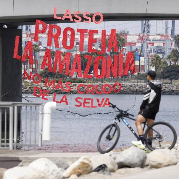 Con pancarta gigante, activistas piden a presidente Lasso que proteja la Amazonía