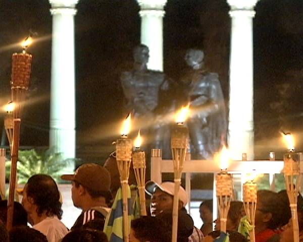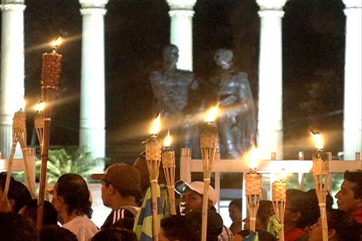 Simpatizantes del comandante Hugo Chávez llegaron de varios sectores de Guayaquil hasta el centro de la ciudad para, con antorchas en mano y gritos alusivos a la revolución bolivariana, expresar su solidaridad con el pueblo venezolano.