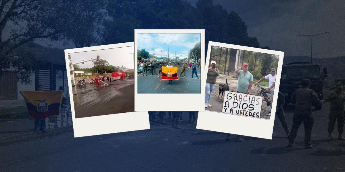 Otras imágenes fueron captadas en Otavalo, donde los habitantes se unieron la las labores de los soldados del Ejército Ecuatoriano para habilitar las vías. Con carteles y aplausos mostraron su agradecimiento a los uniformados.