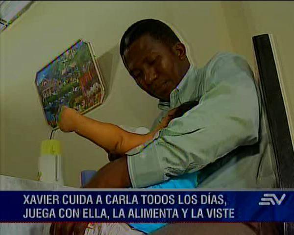 Xavier todos los días cuida de la pequeña Carla de 8 meses de nacida.