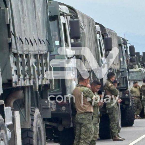 Un convoy militar se encuentra en la parroquia de Tababela, oriente de Quito, listo para salir a la ciudad de Ibarra, provincia de Imbabura, y llevar ayuda humanitaria a los pobladores de esa ciudad del norte del país.