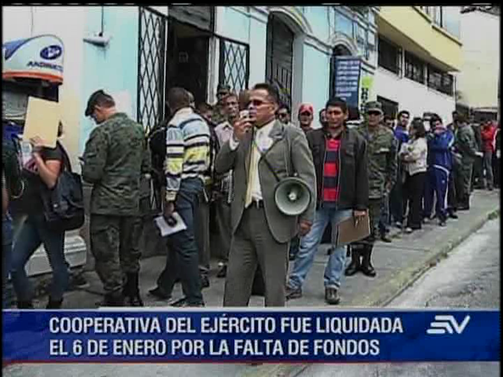 La matriz de la cooperativa del Ejército, ubicada en el sur de Quito, amaneció con decenas de cuenta ahorristas que reclamaban su dinero. La institución fue liquidada el pasado 6 de enero por insuficiencia de fondos y su presidente está detenido.