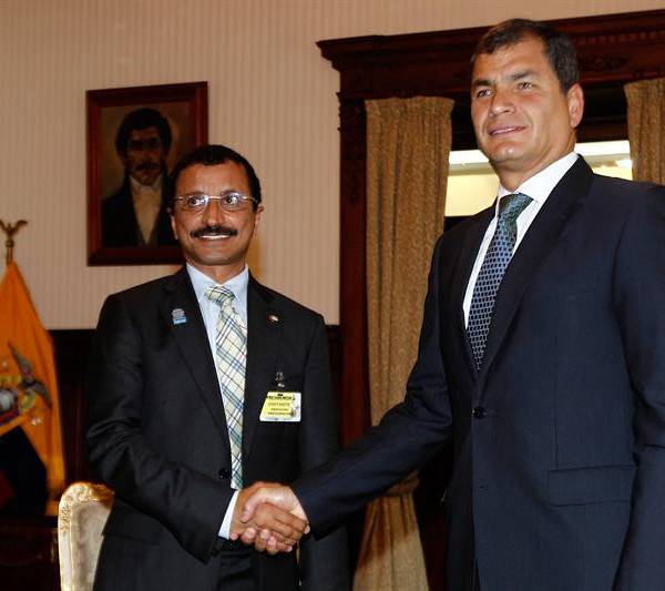 El presidente de la República, Rafael Correa, se reunió ayer con el sultán Ahmed Bin Sulayem, presidente del directorio de la empresa DP World, compañía que maneja 65 terminales portuarias en seis continentes para tratar sobre la posibilidad de construir un puerto de aguas profundas.