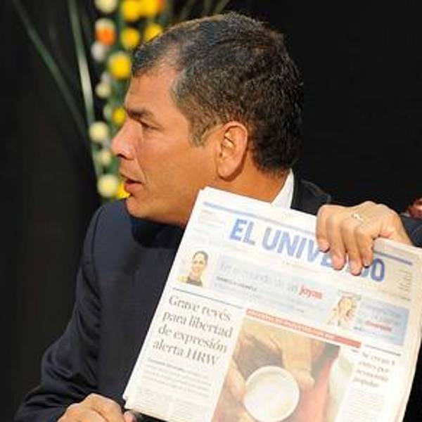 Rafael Correa sostiene una edición del diario El Universo, en 2011.( )