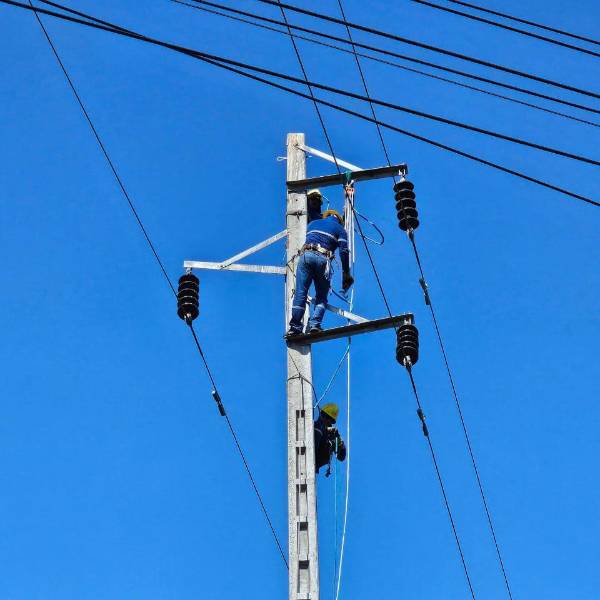 Imagen de CNEL de trabajadores trabajando en un poste de electricidad.( )