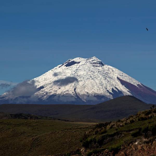 El volcán Cotopaxi, que se encuentra en la cordillera de los Andes, a unos 45 kilómetros al sureste de Quito, es el segundo pico más alto de Ecuador con sus 5.897 metros sobre el nivel del mar.