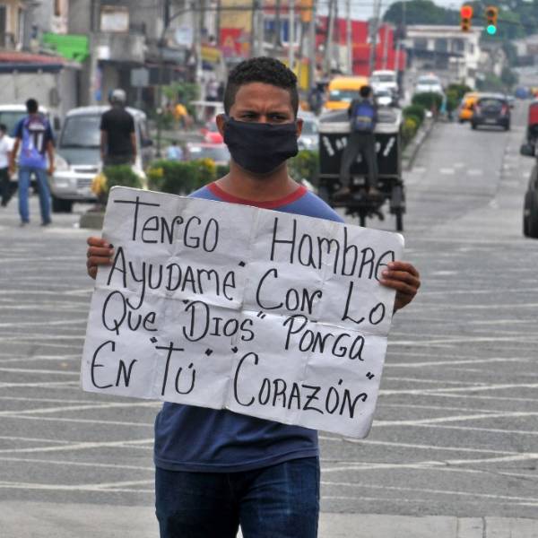 Personas en las calles de las principales ciudades de Ecuador, luchan contra el hambre en plena crisis sanitaria. AFP