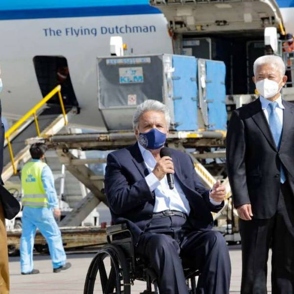 Ecuador recibió este miércoles 7 de abril un primer lote de 300.000 vacunas contra la covid-19 de la farmacéutica china Sinovac, que prevé completar dos millones de dosis hasta la primera semana de mayo, según precisó el presidente Lenín Moreno.