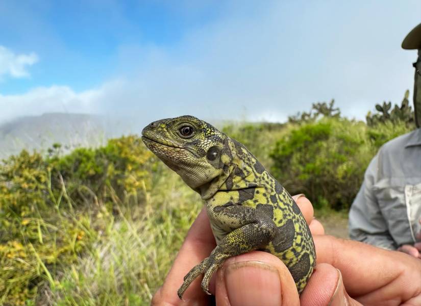 Dos crías de iguana rosada (conolophus marthae), especie endémica de las Islas Galápagos considerada en peligro crítico de extinción, fueron encontradas durante una reciente expedición científica al volcán Wolf, el único lugar del mundo donde habitan los ejemplares de esta especie.
