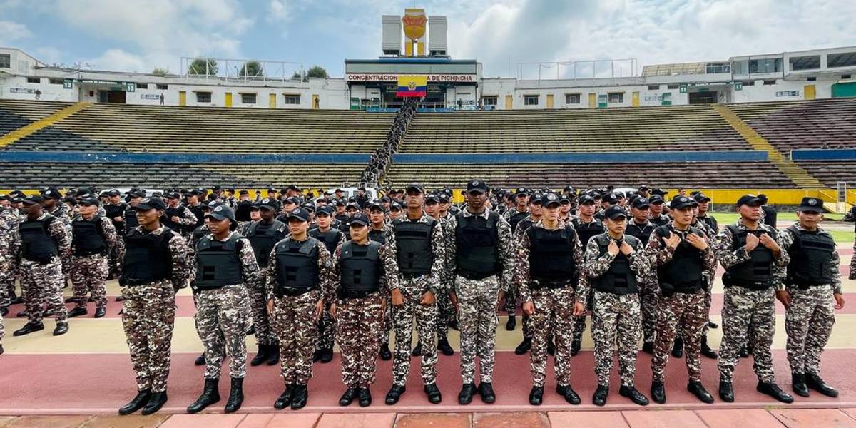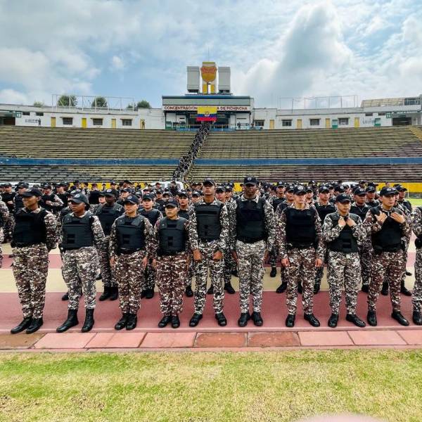 Los nuevos servidores penitenciarios participaron en una ceremonia en el estadio Atahualpa. ( )