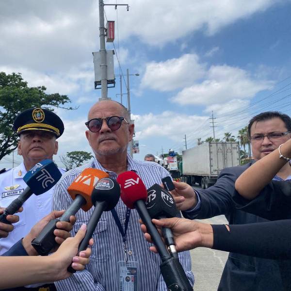 Foto de Hugo Quintana Jedermann, director ejecutivo de la Comisión de Tránsito del Ecuador (CTE), hablando con la prensa.( )