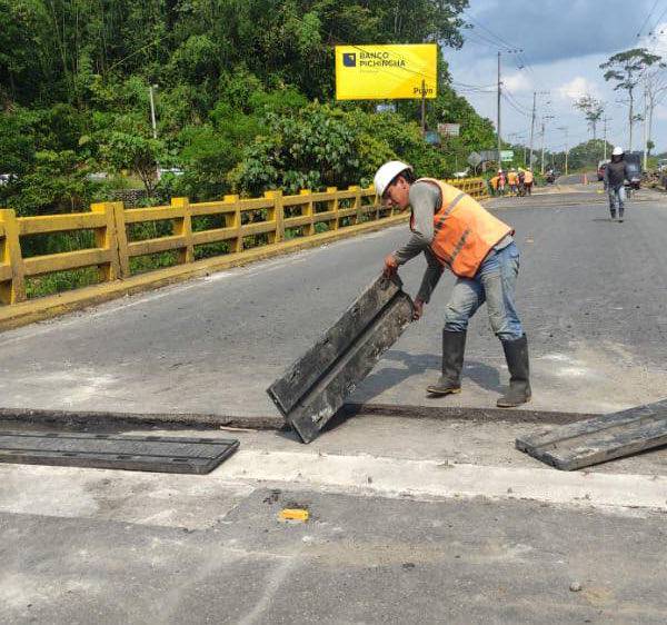 El Ministerio de Obras Públicas busca reforzar las bases del puente sobre el Río Pindo Grande, en el sector de Bellavista, que ha sido afectado por las crecidas del río durante la temporada lluviosa. Allí también se construye un muro de escolleras para evitar que el agua afecte las bases de la estructura.