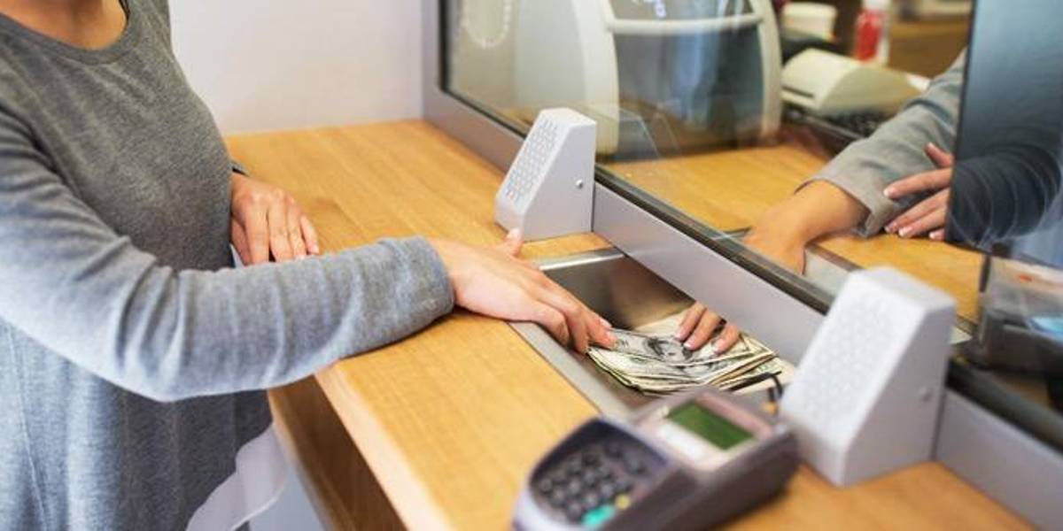 El cajero hace unas maniobras con los billetes y en un momento introduce uno de los billetes debajo del teclado de su computadora.