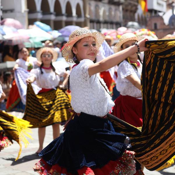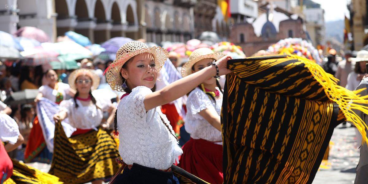 Con baile y música, unos 2 300 menores de edad alegaron a los turistas en la capital azuaya. Con este desfile estudiantil, iniciaron oficialmente las festividades.