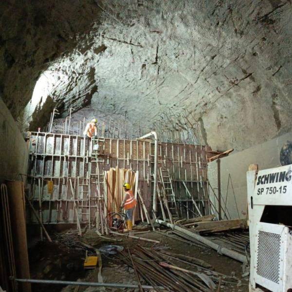 Obreros finalizan el tapón de un túnel en Toachi Pilatón. ( )