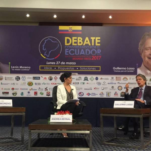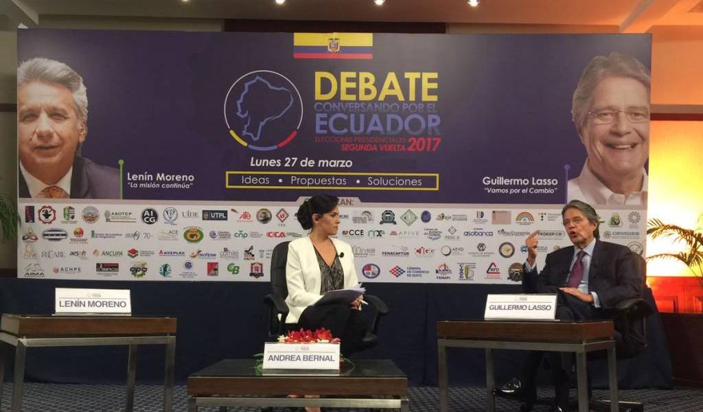 El debate presidencial, denominado “Conversando por el Ecuador, finalmente no se realizó la noche de este lunes 27 de marzo de 2017 porque solo asistió el candidato presidencial por la alianza CREO-SUMA, Guillermo Lasso y no el postulante de Alianza PAIS, Lenín Moreno.