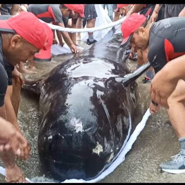 El cetáceo estaba en playa Cautivo y fue descubierta por miembros del Ejército.