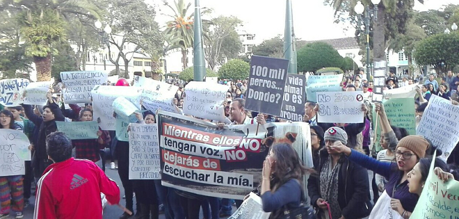 Esta tarde, algunos de los críticos decidieron reunirse en el parque San Sebastián de la capital lojana, para protestar contra el pronunciamiento de Castillo en su programa 'A puerta abierta' que se transmite canal Sur.