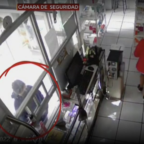 Una mujer, en Chillogallo, en el sur de Quito, es grabada por las cámaras de seguridad finge ser cliente de la farmacia, pide varios medicamentos y cuando la encargada le iba a entregar la mercadería un sujeto con un arma de fuego amenaza a la trabajadora y logra ingresar.