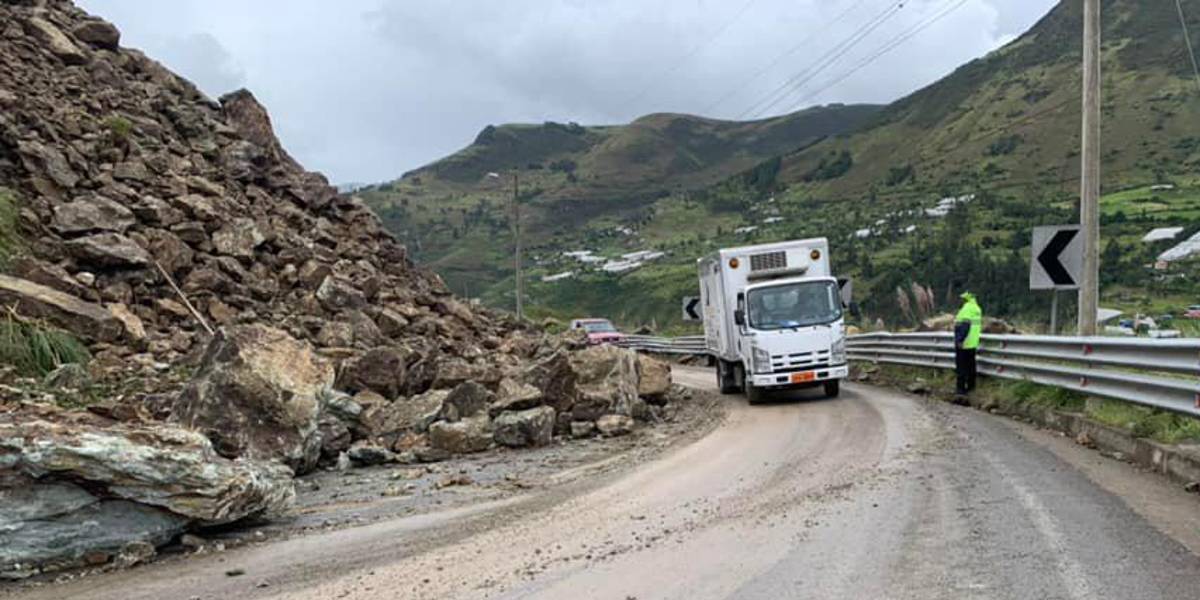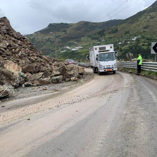 Un deslizamiento de rocas y tierra mantiene obstruida parcialmente la vía Paute-Guachapala, a la altura del sector Corazón de Jesús, en la provincia de Azuay.