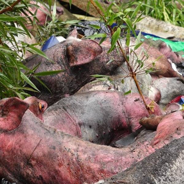 Descubren más de 50 cerdos en descomposición al borde de una quebrada en Paute
