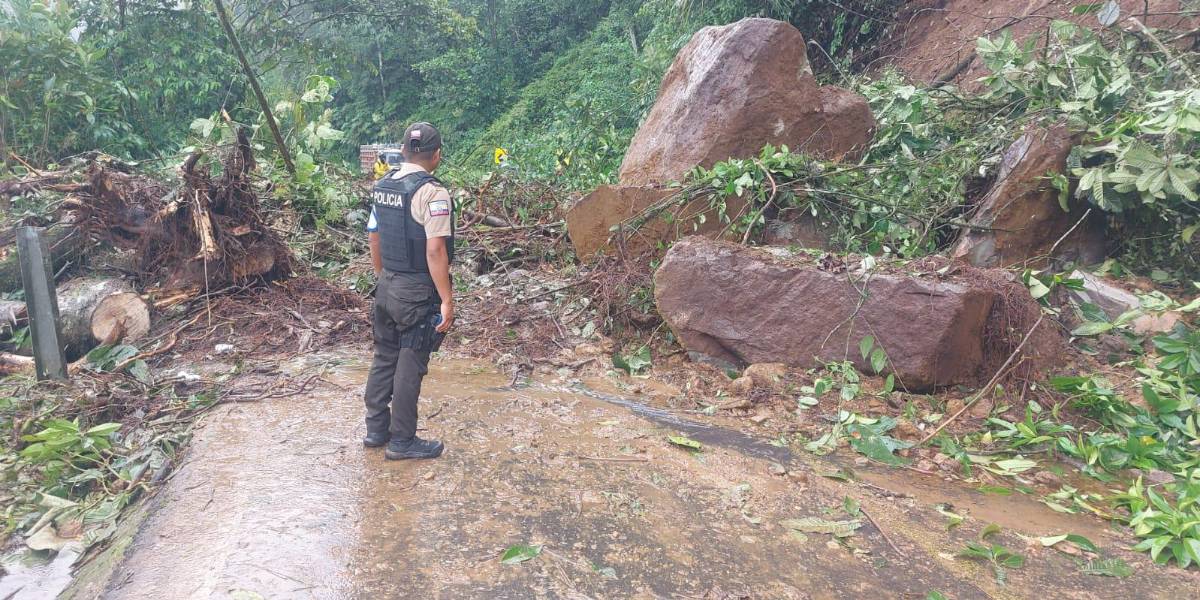 Desde el ECU 911 se coordinó la atención del deslizamiento con personal de la Policía Nacional, Ministerio de Transporte y Secretaría Nacional de Gestión de Riesgos.
