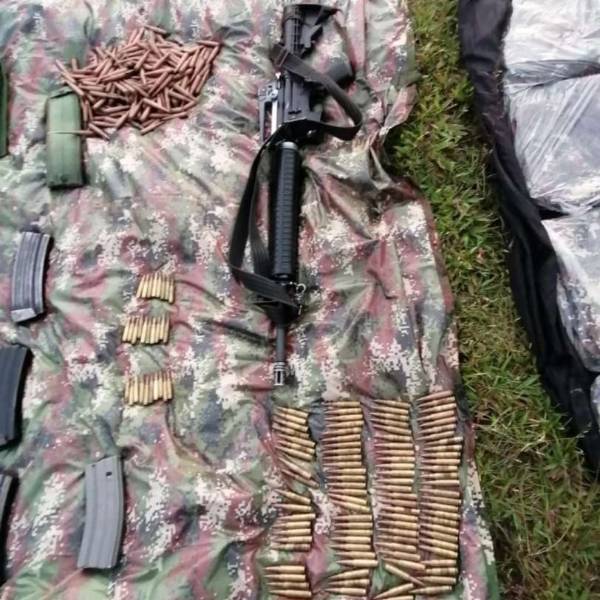 Los uniformados hallaron más de 1.000 municiones, 15 alimentadores de fusil AK 47, 1 fusil Bush Master con alimentadora, 28 cartuchos calibre 5.56 mm, 4 trampas explosivas, entre otras armas y provisiones militares.