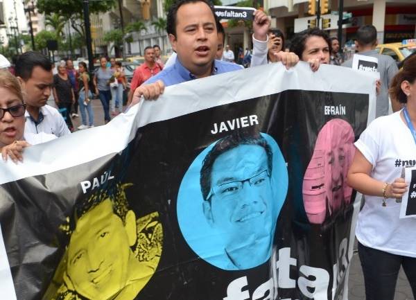 El periodista Javier Ortega, el fotógrafo Paúl Rivas y el conductor Efraín Segarra fueron secuestrados el pasado 26 de marzo en una zona rural de la parroquia ecuatoriana de Mataje, provincia de Esmeraldas y fronteriza con Colombia, donde a finales de enero estalló un coche bomba cerca de la principal comisaría de la Policía, atentado atribuido a las disidencias de las FARC.