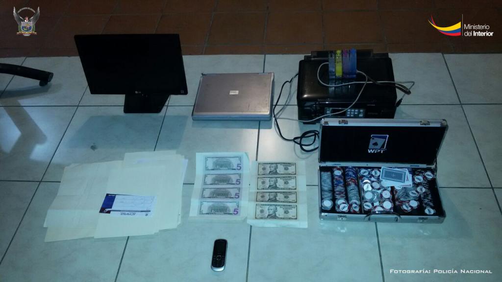 Mediante operaciones de inteligencia, agentes de la Policía Judicial de Portoviejo detectaron que en la capital manabita se estarían dedicando a la falsificación de dinero de diferentes denominaciones. Según el Ministerio, se utilizaban impresoras específicas para falsificar el dinero.