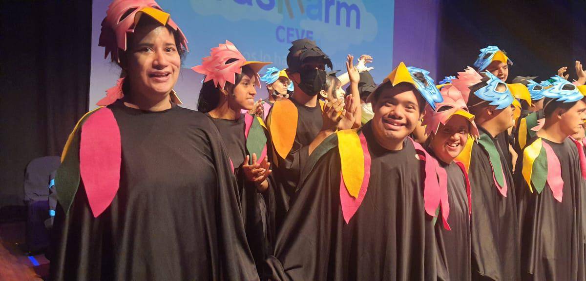 78 artistas en escena -adultos con síndrome de down- actuaron en la obra Vuela, realizada en el marco del Día Internacional de las Personas con Discapacidad.( )