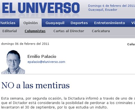 En tanto que periódico digital oficialista El Ciudadano también publicó ayer la columna, acotando que lo hace para que "no se distorsione el punto de vista de los ciudadanos sobre los hechos que motivaron la querella contra El Universo".