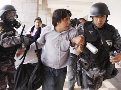 Marcelo Rivera fue sentenciado a tres años de prisión por agresión terrorista tras los incidentes del 8 de diciembre del año 2009 en la Universidad Central. La demanda fue presentada por Edgar Samaniego, rector de la institución educativa quien resultó herido en la turba.