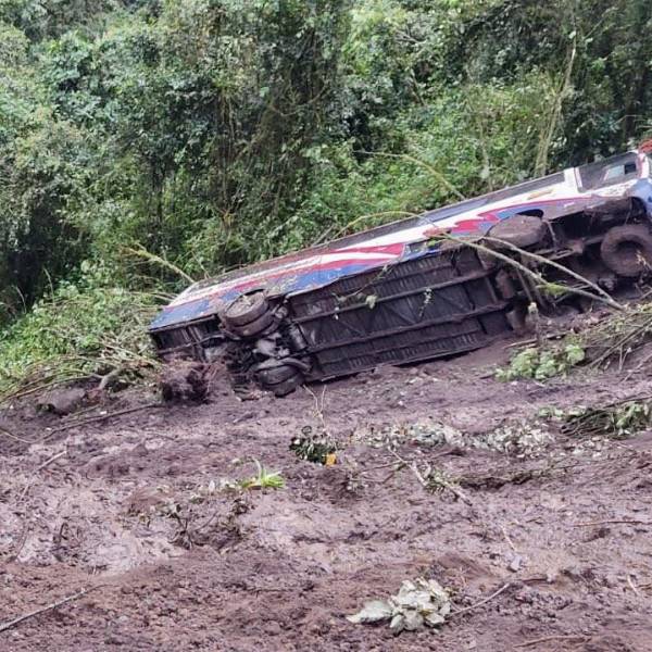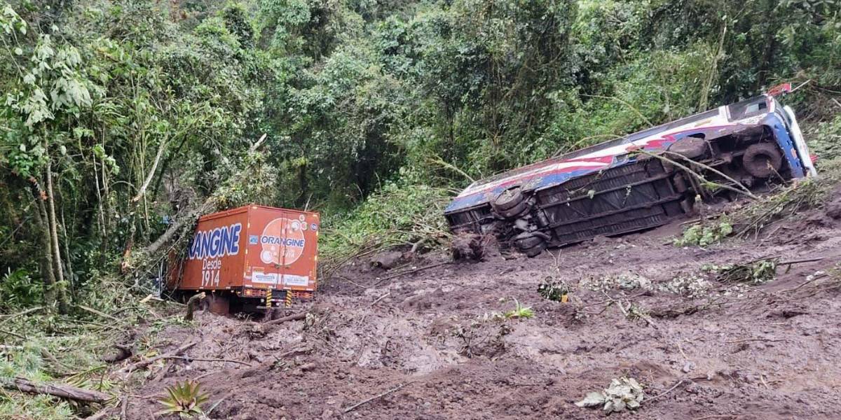 Dos buses y un camión cayeron al abismo por un deslizamiento de tierra en la vía Alóag-Santo Domingo