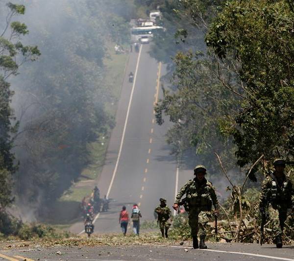 La Policía señaló, además, que en algunos bloqueos de carreteras se observa el uso de artefactos explosivos improvisados y armas de fuego para atentar contra la fuerza pública y los propios manifestantes.