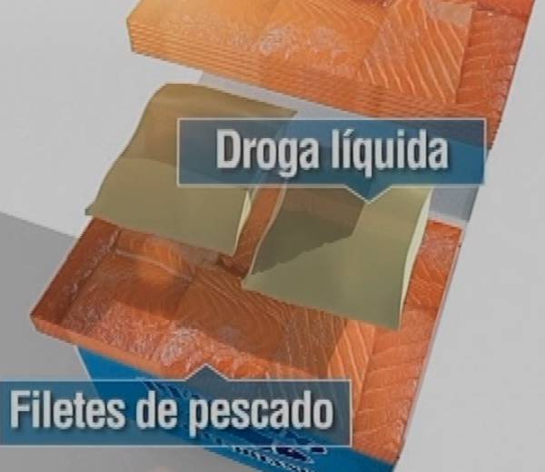 La mitad de las cajas ya estaban dentro del contenedor, en el interior de cada caja había varias capas de los filetes de merluza, y en medio de estas se escondían las fundas con la cocaína líquida que por el frío, ya estaba congelada; así iban a ser transportadas: dos fundas por caja.
