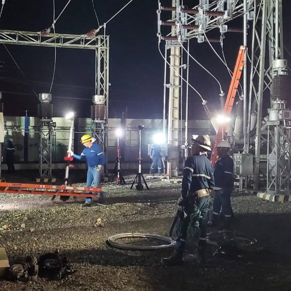 Imagen de archivo de trabajadores de CNEL en una estació eléctrica.( )