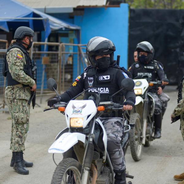 Militares y policías vigilan en las afueras de la penitenciaría de Guayaquil, en una fotografía de archivo. EFE/Marcos Pin