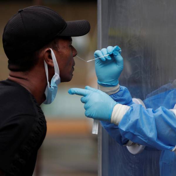 Un hombre se somete a una prueba hisopada de coronavirus.( )