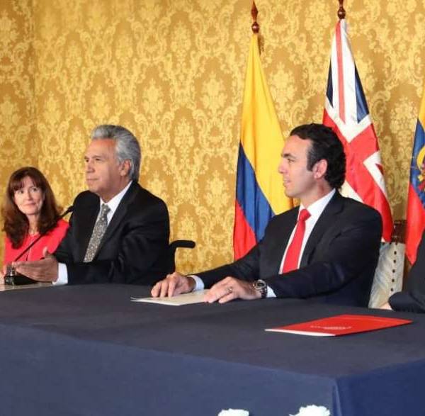 Ecuador, Colombia y Perú firmaron este miércoles 15 de mayo un acuerdo comercial con Reino Unido para mantener preferencias arancelarias con ese país frente a su eventual salida de la Unión Europea (UE).