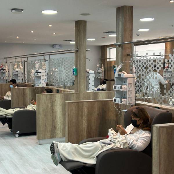 En Solca hay tres salas destinadas para las quimioterapias. Entre 130 a 150 personas reciben los tratamientos en un espacio adecuado, estéril, silencioso, con sillones y cobijas para que se sientan cómodas. El personal médico es amable y las recibe siempre con una sonrisa.